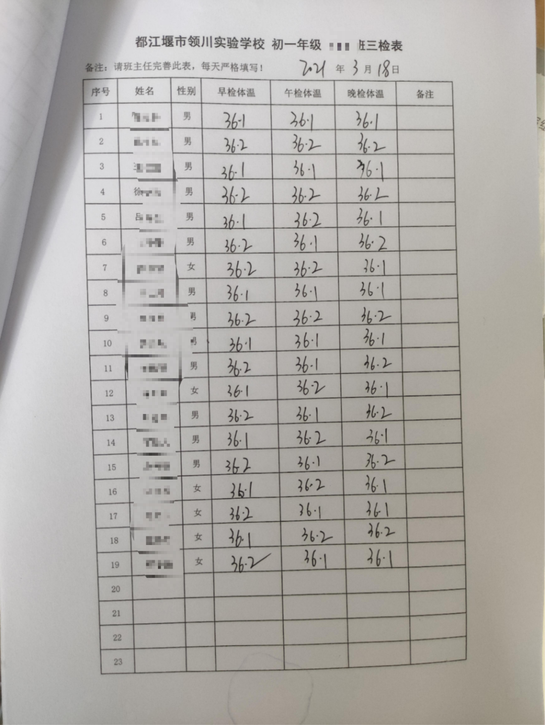 班级教室每天坚持开窗通风3次以上,每次不少于30分钟,降低室内空气中微生物的数量,改善室内空气质量。
