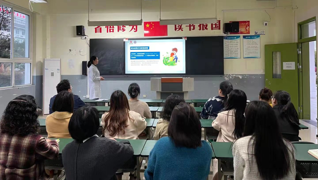 3月18日,我校召开春季传染病预防工作大会。校医务室陈医生针对春季常见传染病预防向各年级班主任开展了知识讲座,重点讲述了诺如病毒、流行性感冒、手足口病等春季传染病的主要症状和预防措施。同时晚上各班开展春季传染病预防的主题班会,提高学生防范传染病的意识和能力。
